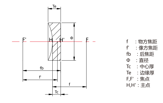 直徑(mm) | 聚焦(mm) | 后聚焦(mm) | 中心厚度(mm) | 邊緣厚度(mm) | 曲率半徑(mm) |